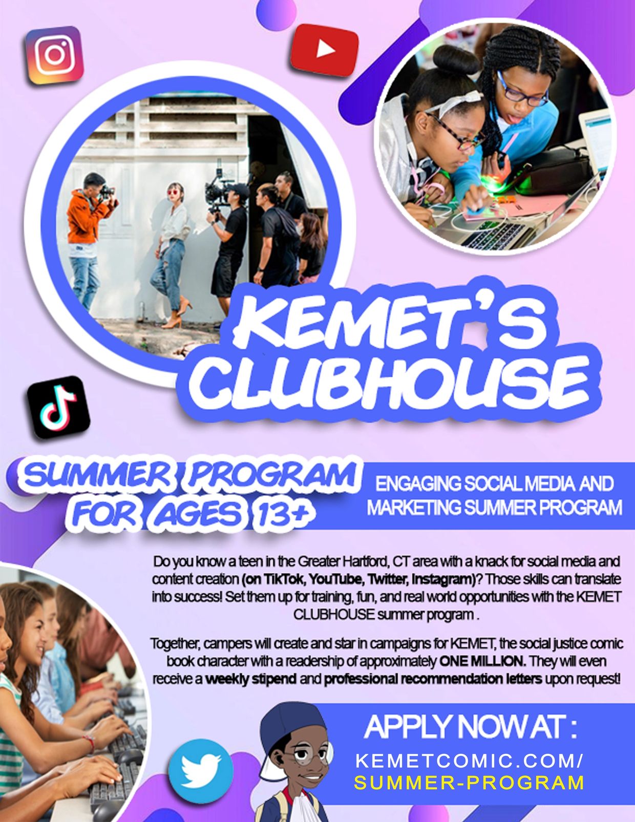 Do you know a teen in the Greater Hartford, CT area with a knack for social media and content creation (on TikTok, YouTube, Twitter, Instagram)? Those skills can translate into success! Set them up for training, fun, and real world opportunities with the KEMET CLUBHOUSE summer program .
